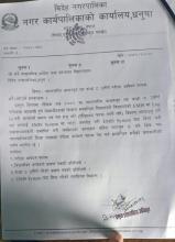 विदेह नगरपालिकाको नगर प्रमुख श्री बेचन दास ज्यु बाट बिकास निर्माणको काम काजहरु अगाडी वदाउनको लागी टिप्पणी आदेश सदर गर्दै ।