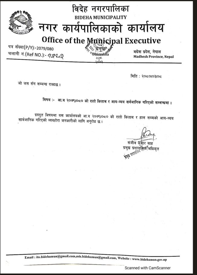 आ.व. २०७९/०८० काे राताे किताब र आय-व्यय सार्वजनिक गरिएकाे सम्बन्धमा ।