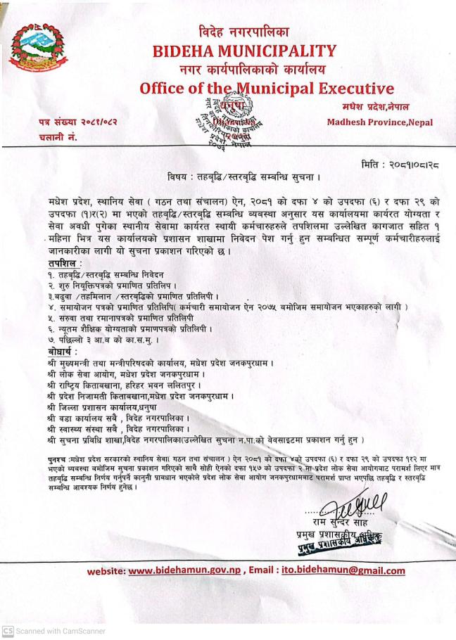 » तहबृद्धि/स्तरबृद्धि सम्बन्धि आवश्यक सूचना ।