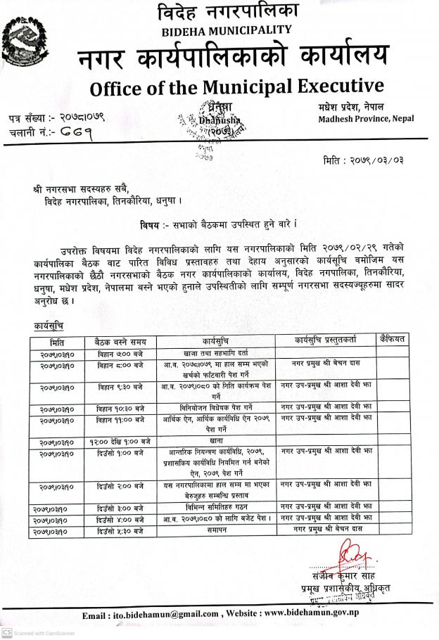 नगर सभा बैठक मा उपस्थित भई दिनु हुन ।
