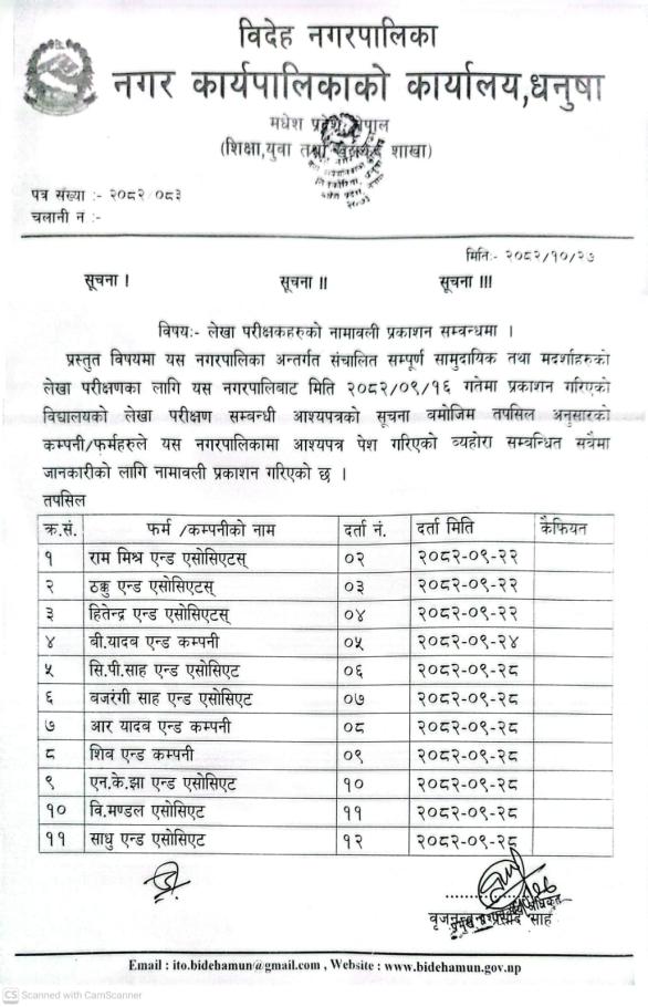 » लेखा परीक्षकहरुको नामाबली प्रकाशन गरीएको वारे ।